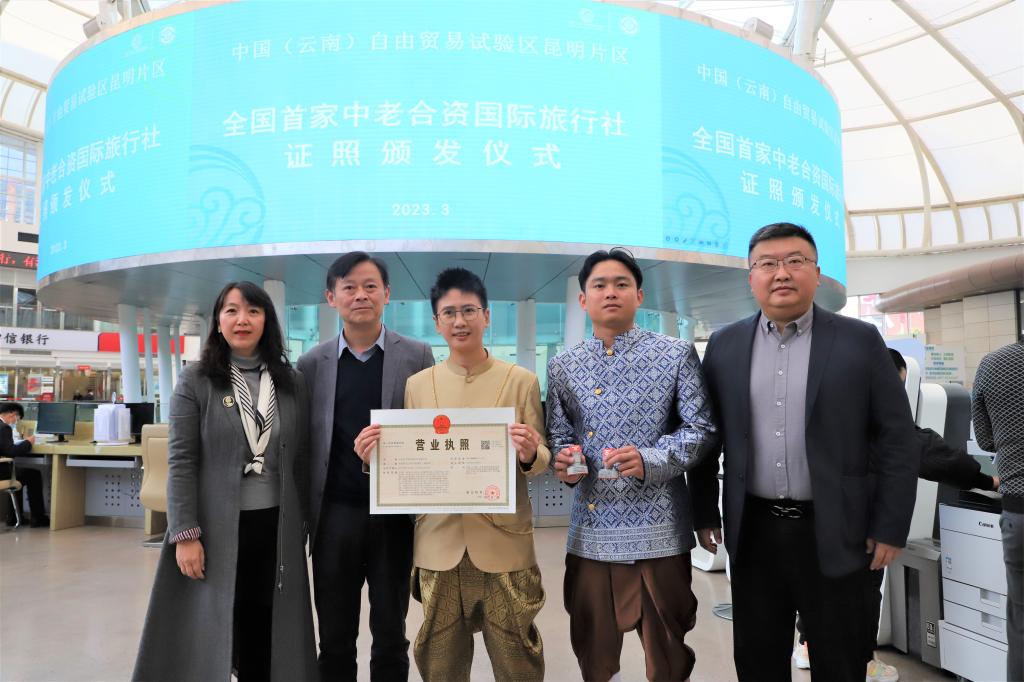 3月8日,全国首家中(国)老(挝)合资国际旅行社证照在中国(云南)自由贸易试验区昆明片区颁发,永利官网老挝籍留学生王伟(中文名)创业项目“云南老中国际旅行社有限公司”落地自贸试验区昆明片区,这也是云南省首家外资旅行社在片区落地。
