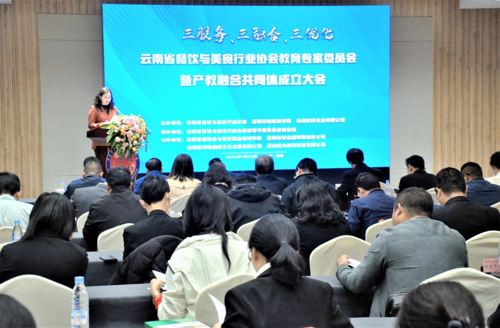 3月22日,云南省餐饮与美食行业协会教育专家委员会暨产教融合共同体成立大会在昆举办。会议深入贯彻落实《关于深化现代职业教育体系建设改革的意见》精神,践行“一体、两翼、五重点”的重大举措,立足“三服务”、统筹“三协同”、推进“三融合”、实现“三优化”,积极探索餐饮职业教育可复制、可推广的新经验、新范式,共同打造云南省产教联合体。