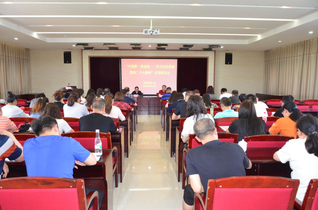 本次培训首先由学校党委副书记、工会主席王文成同志主讲 “中国梦•劳动美——学习宣传贯彻党的二十大精神”宣讲报告会。王文成副书记围绕学习习近平总书记有关指示精神,把准工会工作的方向,全面学习领会“六个必须坚持”的丰富内涵,贯彻“六个必须坚持”的要求、做好工会工作,结合工会工作宣讲解读党的二十大精神,对全校工会干部、广大教职员工深刻理解、准确把握党的二十大精神,进一步找准做好工会工作的切入点和结合点,切实发挥校、院两级工会的桥梁纽带作用,为教职工提供更多贴心便捷的服务,努力实现工会工作的科学化、规范化、高效化具有重要的指导意义。