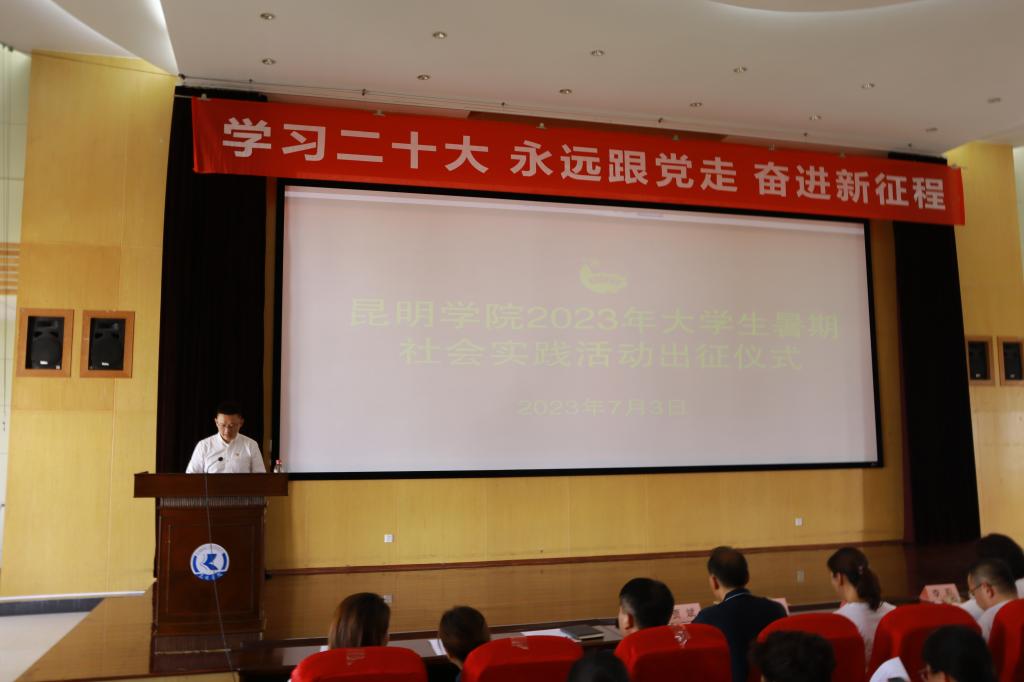 7月3日,3044am永利官网2023年大学生暑期社会实践出征仪式在惟行楼1501报告厅举行。学校党委副书记李莉,宣传部、团委、学生处、教务处、招生就业处相关领导和各二级学院党委副书记出席仪式。校团委全体教师团干部,各二级学院团委书记及暑期社会实践活动志愿者代表参加。仪式由校团委副书记郎易主持。