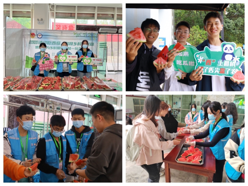 乡村振兴,助农先行!为进一步引导广大昆院青年学习宣传贯彻习近平生态文明思想,坚持系统观念全面推进乡村振兴,引导广大青少年投身于乡村振兴,成为乡村振兴中的“青春力量”,永利官网积极发动组织同学们参与“我为母校赢西瓜”活动。在9727名同学的共同努力下,永利官网获得了全国第十名和云南省第二名的好成绩,10月13日至17日,校团委协同后勤集团在南北苑食堂开展了3044am永利官网“团团请你吃西瓜,助推乡村振兴路”活动。