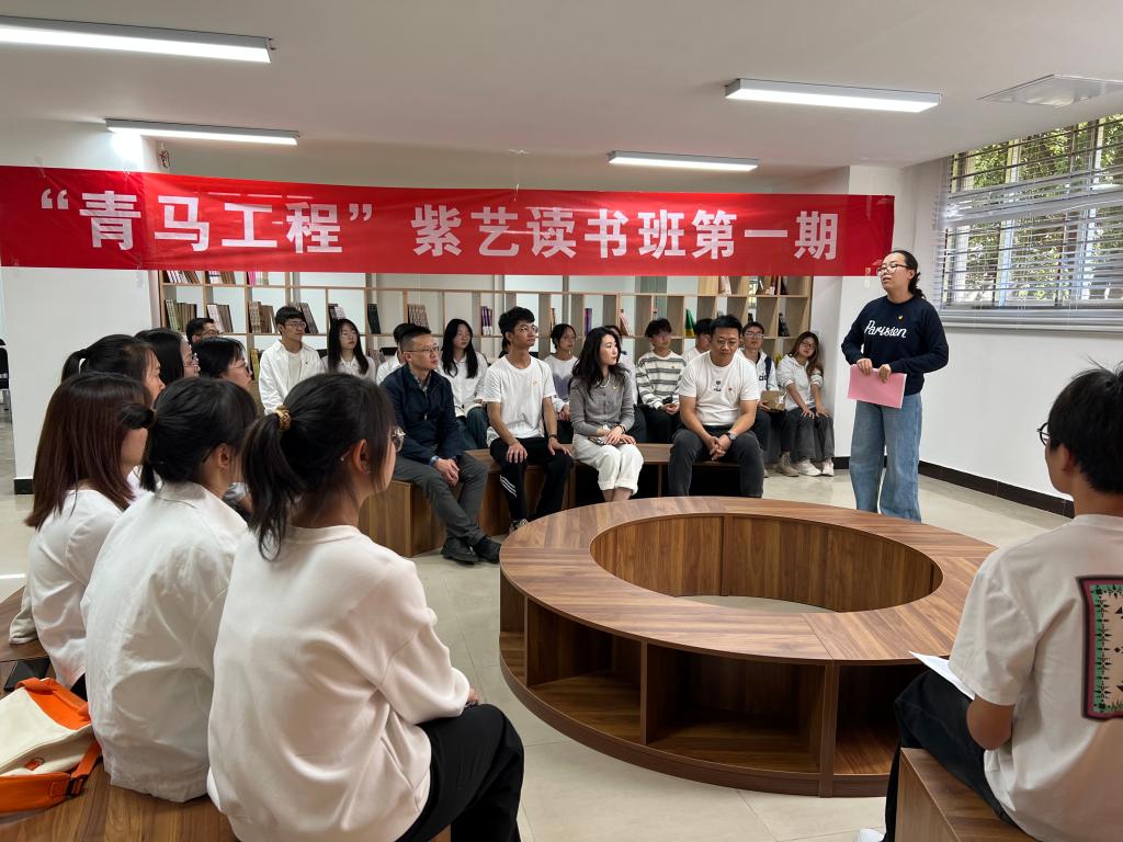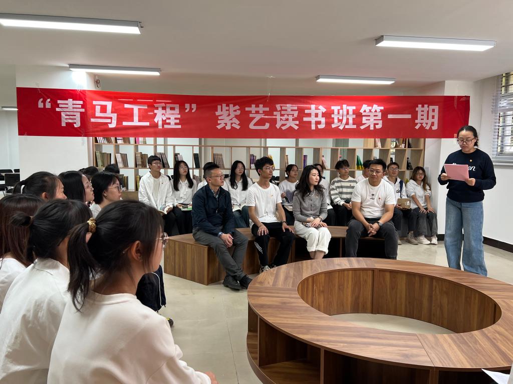 11月4日下午,3044am永利官网团委在“一站式”学生社区党建文化悦读空间举办“青马工程”第二期紫艺读书会。校团委、二级学院团委相关师生团干部,校团委宣传部、新媒中心、学术科创部、广播台、学生成长服务中心、研究生会、大学生艺术团等“青马”学员参加读书会。