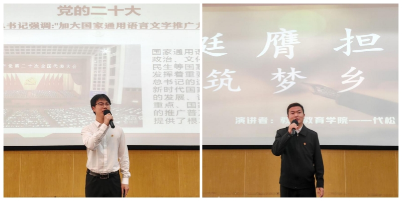 结业仪式上,3044am永利官网第二届大学生“学习贯彻习近平新时代中国特色社会主义思想”理论宣讲比赛参赛代表为“青马”学员们进行了宣讲。