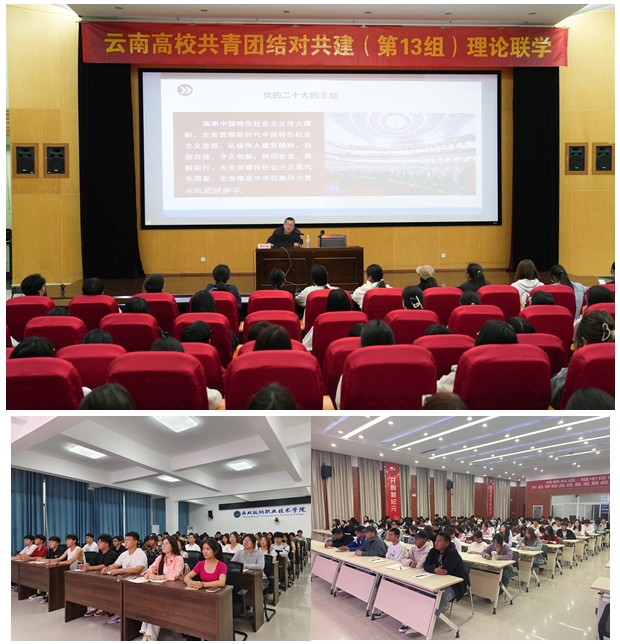 六所高校团委共同举办第一期理论联学活动,采取线上线下相结合的方式,邀请中共云南省委党校、云南行政学院专家为六所高校师生作题为《以中国式现代化全面推进中华民族伟大复兴》的专题辅导,六所高校团干部及青年学生代表400余人参加辅导。