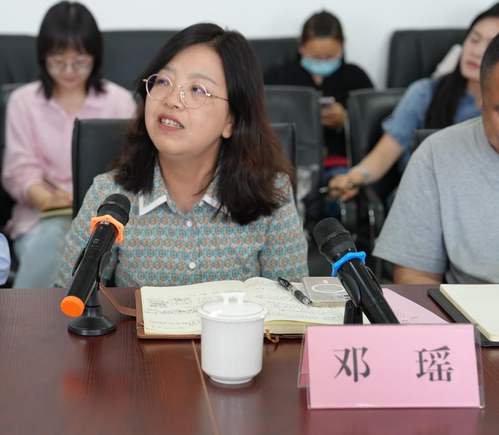 美术与艺术设计学院党委书记祝立业、教务处处长邓瑶、人文学院吴彦勤教授、音乐舞蹈学院何马玉涓副教授、马克思主义学院思想道德与法治教研室主任缪文武副教授、形势与政策教研室主任李守雷副教授、教师代表李珺副教授先后发言,结合管理、教学科研工作经验,分享了挖掘校史红色资源,弘扬聂耳精神方面取得的成效,针对“大思政课”建设提出意见建议。马克思主义学院学生代表朱子霖分享了了解聂耳事迹,受到信仰感召,主动参与宣讲聂耳精神的心路历程。