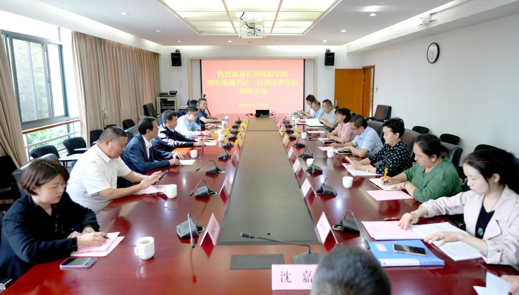 4月18日,长沙师范学院党委副书记周明侠带队到校考察交流。学校党委副书记李莉热情接待周明侠一行。双方深入开展合作交流,进一步推进签订合作协议的落实落地,共同促进事业发展。