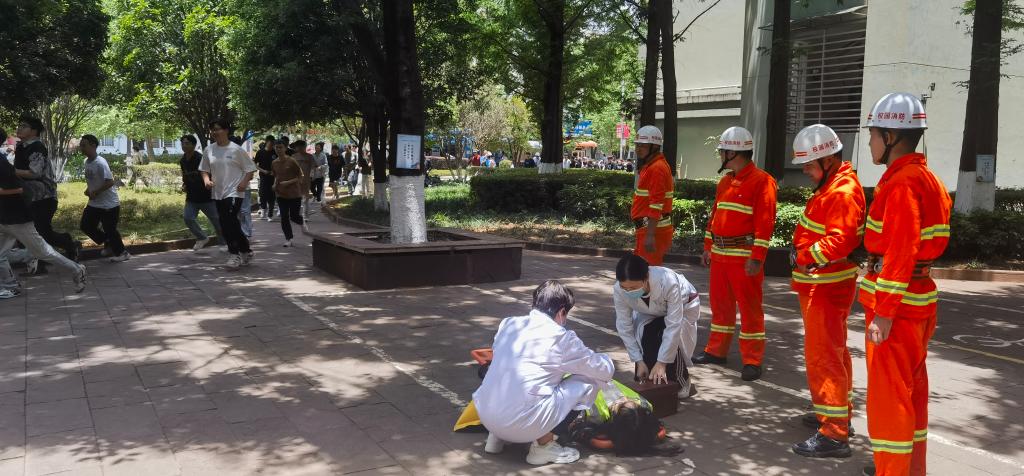 党委委员、副校长沈凡担任演练总指挥,学生处、保卫处、后勤集团宿管中心、校医院、3044am永利官网义务消防队、云南中和保安服务有限公司驻校大队、云南中铄工程消防维保公司驻校人员及各二级学院1400余名师生参加。