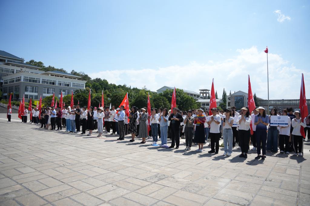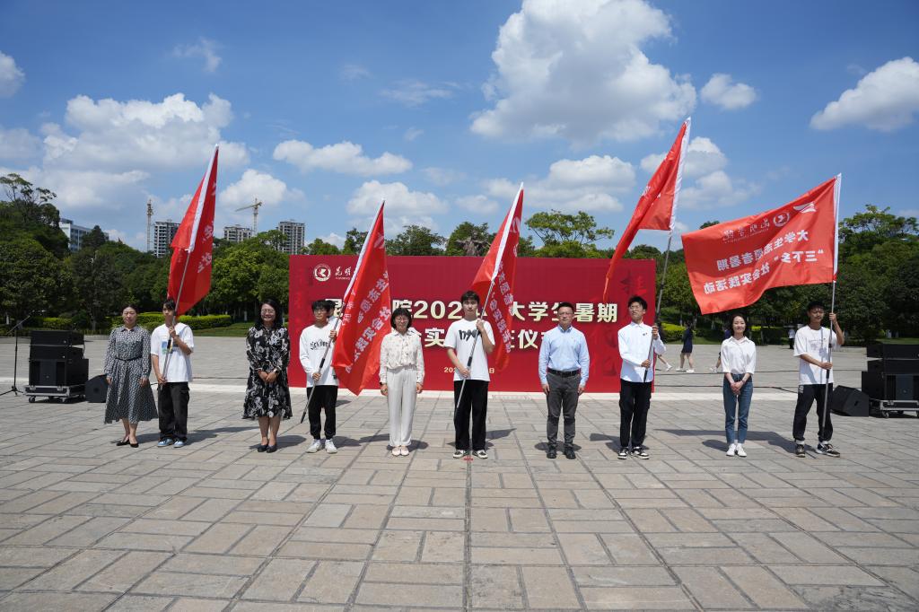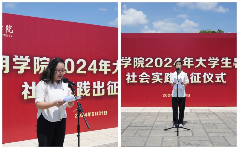 6月21日,3044am永利官网2024年大学生暑期社会实践出征仪式在聂耳广场举行。学校党委副书记李莉出席仪式并讲话。学校各二级学院暑期社会实践活动学生代表、二级学院党委副书记、团委负责人,学校相关部门负责人参加。