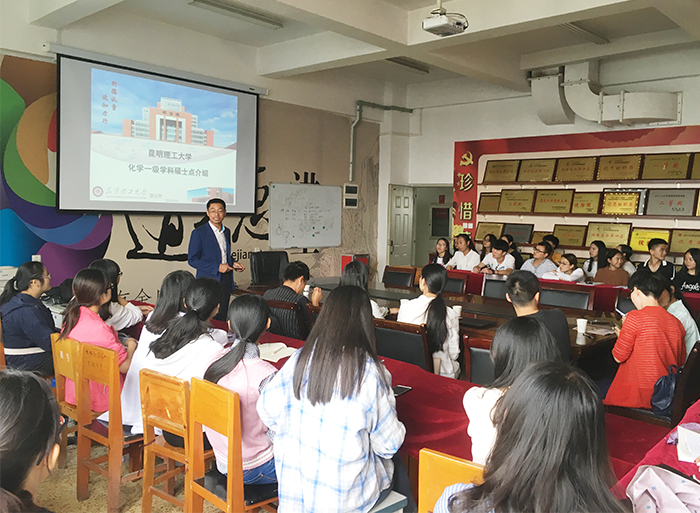 9月20日,昆明理工大学理学院应邀到永利官网化科系惟真楼3409会议室开展考研宣讲活动,我系2015、2016、2017级学生50余人参加。
