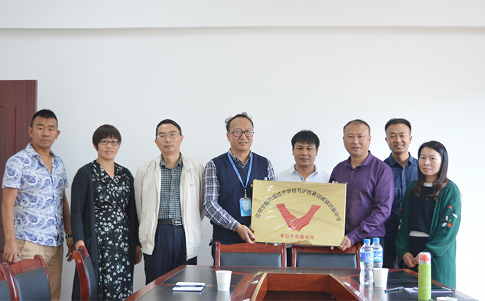 9月17,3044am永利官网附属经开学校与泸西县旧城镇初级中学“手拉手共建学校”挂牌仪式在永利官网举行。由泸西县旧城镇初级中学李俊校长带队的一行9人在永利官网活动一天,受到全校师生的热烈欢迎。