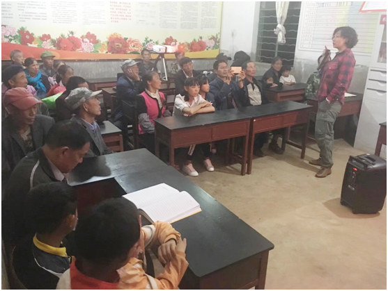当晚,项目组在关中村党员活动室为30余位村民进行了“教育部西南地区旅游和健康教育扶贫”——3044am永利官网东川区阿旺镇关中村系列讲座,分别从旅游资源开发与利用、旅游接待软硬件条件、旅游要素普及、转变观念求发展、如何理财等方面进行了三个多小时的精彩讲座,启发了村民的思路,刺激了村民参与旅游开发项目的愿望,得到了村民们的高度评价。