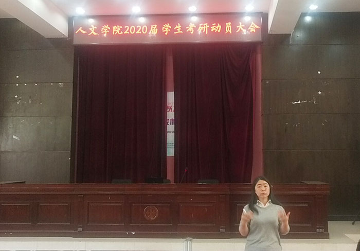 会上,邓瑶副院长介绍了本年度的考研情况,分析了考研的一些主要问题,介绍了人文学院2019年首届汉语言文学新招硕士研究生的情况,并号召大家为考研而积极准备。