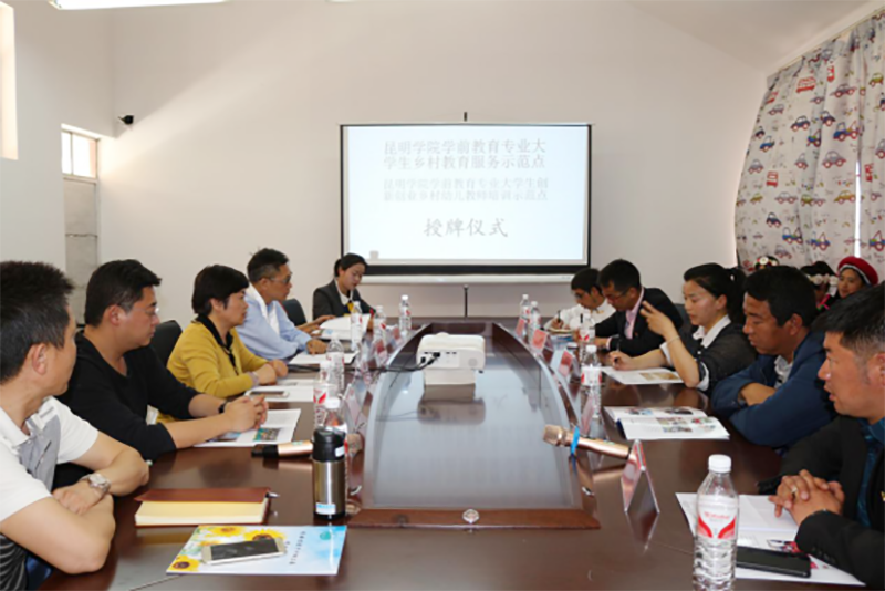 4月13日,学前与特殊教育学院院长唐敏、书记沈中灿一行到香格里拉市三坝乡中心幼儿园(哈巴村分园)出席“3044am永利官网学前教育专业大学生乡村教育服务示范点和“大学生创新创业乡村幼儿教师培训示范点”授牌仪式。本次授牌仪式是在香格里拉市教育体育局和3044am永利官网学前与特殊教育学院两年多的通力合作基础上举办的,香格里拉市体育教育局局长牛盈春,三坝乡副乡长树继文参加授牌仪式。