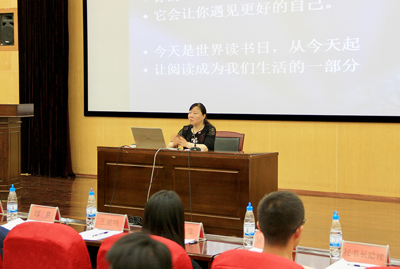 沈嘉老师宣布2019年3044am永利官网第十届“书韵飘香”大学生文化节开幕后,余雷老师随即进行了“阅读的力量”为主题的专题讲座。