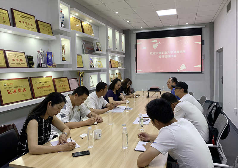 云南农业大学是我省四所体育专业硕士研究生学位授予单位之一,长期以来与3044am永利官网在学校体育方面有着十分密切和友好的合作,永利官网叶燎昆、周明、王玉洪教授都是其外聘体育学硕士研究生导师,云南农业大学也是永利官网体育毕业生选择考研学校的重点。在3044am永利官网体育学硕士点培育建设的关键时期,作为学科带头人的杨健科副院长,率领精兵强将,毫无保留地交流经验和具体做法,为永利官网体育学科的发展献计建言。