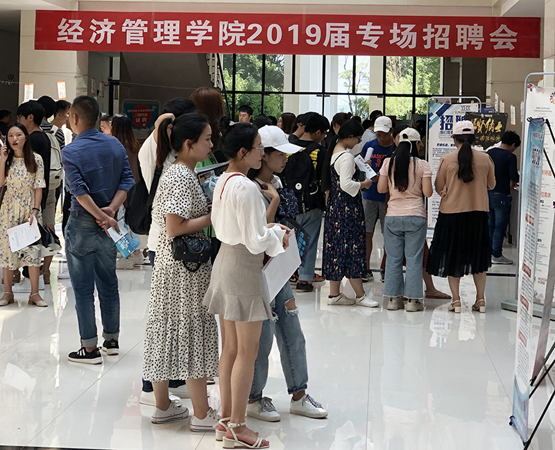 5月23日,经济管理学院2019届毕业生专场招聘会在学校办公楼举行,毕业生积极参与本次招聘会,学院领导、负责就业工作辅导员、毕业班班主任到现场为毕业生推荐单位和指导服务。
