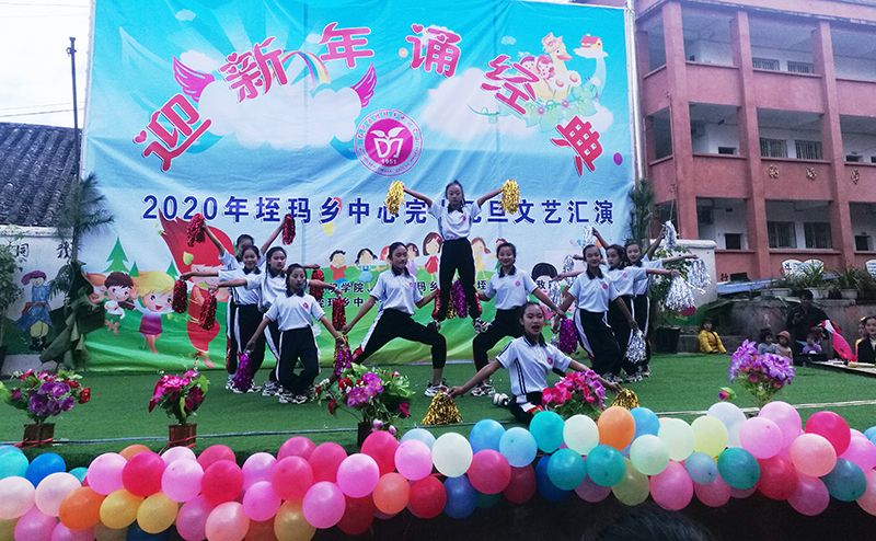 2019年12月31日,3044am永利官网省级定点扶贫挂包点——红河县垤玛乡中心完小坐满了来自全乡6所小学表演的近1000多名师生,大家欢聚一堂,以舞蹈、诵读国学经典的形式,共同迎接新年的到来。