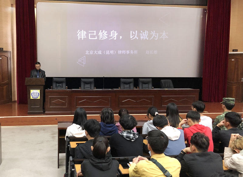 10月30日,建筑工程学院特邀大成Dentons律师事务所昆明分所党建顾问兼秘书长赵长雄围绕“为人诚实,做事诚信,待人诚恳”为全体2020级新生作《律己修身 以诚为本》专题讲座。学院党委副书记侯青妮老师、团总支书记余一夫老师、2020级新生及今年退伍返校复学的4名同学参加讲座。