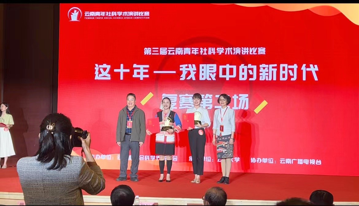 9月26日,由云南省社科联主办、云南大学承办、云南广播电视台协办的第三届云南青年社科学术演讲比赛决赛顺利落幕。人文学院广播电视学专业孙雪莹老师以《守匠心 传非遗 助力乡村振兴——网络视听青年瞭望号在行动》为题,代表学校参赛,获省级三等奖。