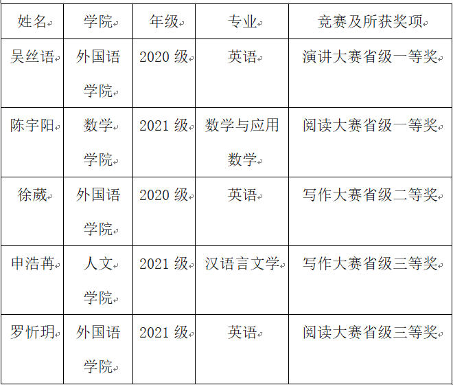 11月4日,2022年“外研社·国才杯”全国英语演讲大赛云南赛区决赛暨写作、阅读大赛颁奖典礼在昆明理工大学举行,永利官网外国语学院2020级英语专业学生吴丝语等5位同学共获得省级一等奖2项、二等奖1项和三等奖2项。