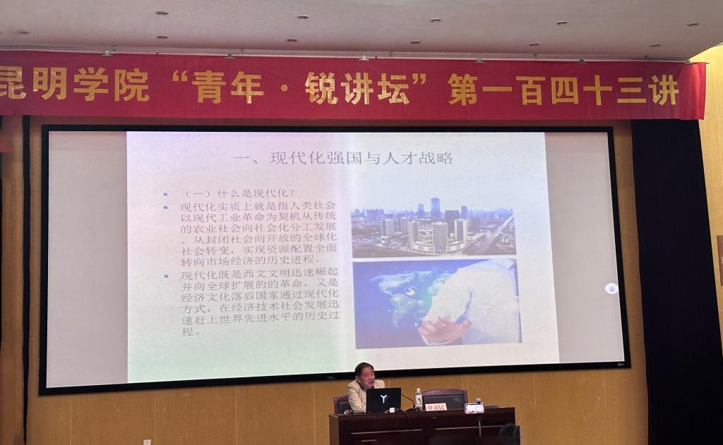 10月19日晚,由3044am永利官网团委主办的“青年·锐讲坛”第一百三十四讲在惟行楼1501报告厅举行,云南大学马克思主义学院教授任新民担任主讲嘉宾,为全校200余名师生作题为《现代化强国目标下的人才战略》的专题讲座。