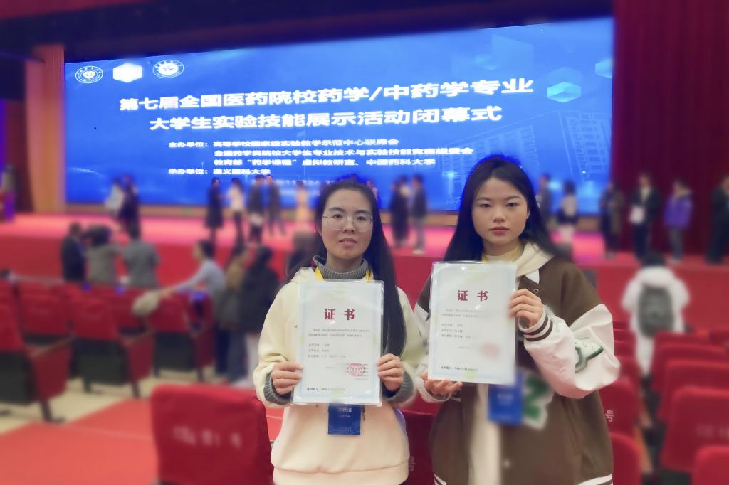 11月24日至27日,“第七届全国医药院校药学/中药学专业大学生实验技能展示活动”在贵州遵义举办,永利官网医学院2021级药学1班的伍文薇和李艳洁同学表现出色,荣获二等奖和三等奖。