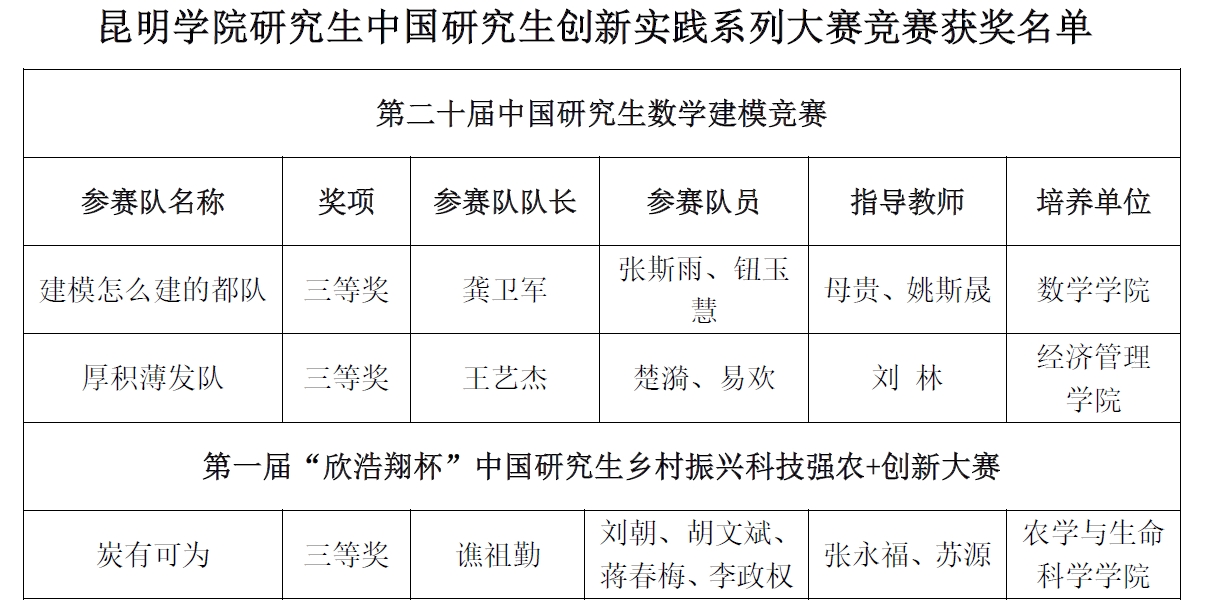 近日,永利官网研究生部积极组织动员研究生培养单位参加“第二十届中国研究生数学建模竞赛”及“中国研究生乡村振兴科技强农+创新大赛”,推选11支研究生参赛队参加“第二十届中国研究生数学建模竞赛”,3支参赛队参加“中国研究生乡村振兴科技强农+创新大赛”。经过大赛严格评审,数学学院、经济管理学院、农学与生命科学学院3支参赛队荣获两个系列大赛3项全国三等奖。