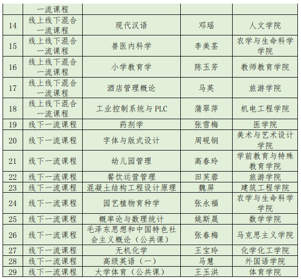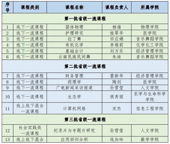 近日,云南省教育厅公布了第三批省级一流本科课程认定名单,3044am永利官网18门本科课程入选,其中线下一流课程11门、线上线下混合式一流课程6门、社会实践一流课程1门。至此,学校共有29门省级一流课程,在省内同类高校中领先。纪录片与专题片研究、财务管理学、现代汉语、生态学、幼儿园管理、餐饮运营管理、高级英语(一)7门课程被省教育厅推荐参加第三批国家级一流课程的评选。