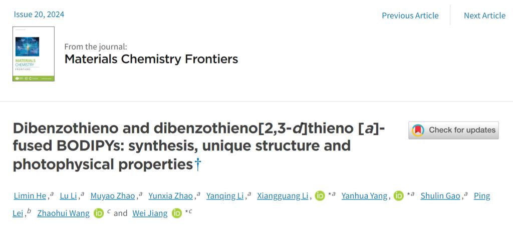 【成果2】二苯并噻吩并和二苯并噻吩并[2,3-d]噻吩并[a]-稠合BODIPYs:合成、独特结构和光物理特性