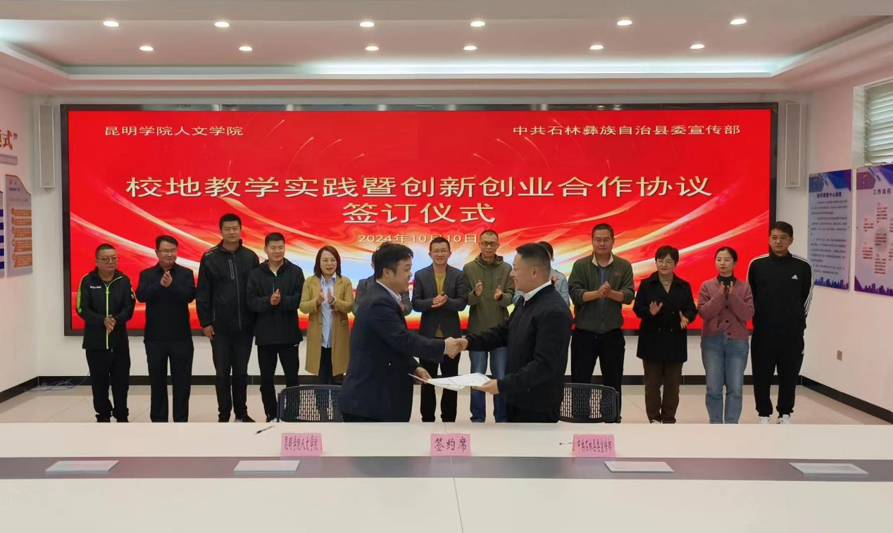 为推进院政合作共育英才,发挥优势服务地方,10月10日,永利官网人文学院与石林县委宣传部在石林县融媒体中心签订院部合作协议,并正式挂牌“学生实践教学基地”和“大学生创新创业基地”。