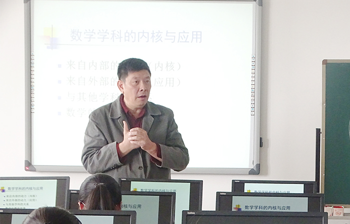 5月17日,数学系邀请退休教师徐裕光教授,为数学系学生作了题为《对话数学》的学术讲座。本讲座是数学系2018年系列讲座之一,系列讲座旨在向师生传递学术前沿信息,活跃学术气氛,传播数学文化,促进学术交流,拓展思维方式。徐裕光老师是前任数学系主任,二级教授,硕士生导师,3044am永利官网非线性分析研究所前任所长,昆明市杰出园丁,昆明市优秀专家,昆明市特等劳动模范,云南省先进教师,云南省高校教学名师(本科),云南省有突出贡献的科技人员,云南省政府特殊津贴专家。