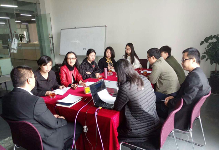 创新事业部总监杨屹江与财务总监张莉和创新事业部经理熊晖等与课题组师生就参加“百校百题”创新课题大赛的选题进行了深入交流,正式确立以“营改增背景下物流企业营运资金管理模式研究”作为本次参赛选题。