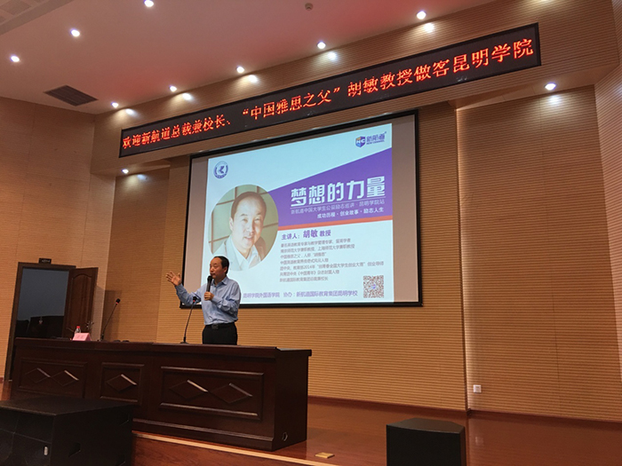 5月11 日,新航道国际教育集团总裁兼校长胡敏教授应邀到永利官网进行了“梦想的力量”大型公益励志主题讲座。此次讲座由外国语学院主办,新航道国际教育集团(昆明新航道)承办。外国语学院各位领导、新航道国际教育集团领导及永利官网部分师生参加了本次讲座。
