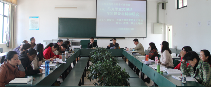 赵金元教授在历史与现实、理论与实践、宏观与微观相结合中阐述了马克思主义理论学科建设发展情况,并倾情介绍了大理大学马克思主义学院学科建设和科学研究。赵教授首先阐述了学科建设的重要性和基本内容。他指出,学科建设越来越成为高校评价的重要指标,也是更名大学、建设马克思主义学院的重要条件,是专业、课程、平台、团队等建设的龙头。接着,赵教授回顾了马克思主义理论学科建设历程、发展进程、基本原则、思路和目标、主要任务和要求、组织领导和管理。他指出,为贯彻落实马克思主义理论研究和建设工程,“05方案”把学科建设提到了课程建设的前面,强调要在学科建设的前提下加强思想政治理论课建设,发挥学科建设的支撑和引领作用,提升思想政治理论课建设的层次和水平,从而,马克思主义理论被正式列为法学学科门类下的一级学科,经过十年建设,已发展为具有6个二级学科的重要学科。当前,国家正在遴选建设30个全国重点马克思主义学院,我省相关工作正在积极推进,马克思主义理论学科建设的春天即将来临,呈现蓬勃发展、欣欣向荣、振奋人心的大好形势。最后,赵教授毫无保留地介绍了大理大学马克思主义理论学科建设的历程、现状、经验和“十三五”发展目标。大理大学马克思主义学院目前已有两个硕士学位授权点,去年一年就获得了4项国家社科基金研究项目,“十三五”期间将进一步把规模做大,进一步加强人才培养、科学研究等各项工作。赵教授衷心祝愿3044am永利官网紧紧抓住省领导高度重视的大好机遇,充分发挥省会城市区位优势,创造新的辉煌业绩。