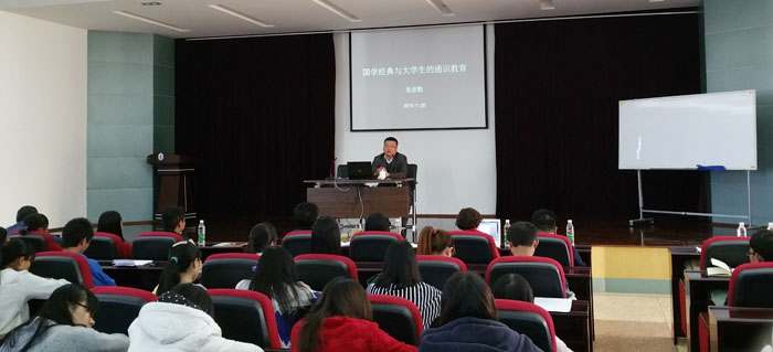 11月20日下午,永利官网人文学院吴彦勤教授在惟行楼4301报告厅作了题为《国学经典与大学生通识教育》的学术讲座,这是2015年由省委宣传部、省社科联主办的“云岭大讲堂”在3044am永利官网的第八讲。
