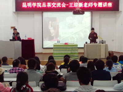 10月22日晚,在青年中心学生报告厅,云南省著名茶人、作家、昆明民族茶文化促进会理事王迎新以“人文茶席—一种因茶而起的生活美学”为题为永利官网学生作专题讲座。