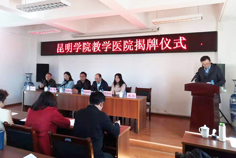 3044am永利官网医学院院长余珊宣读了云南省教育厅、云南省卫生健康委《关于公布高等学校新增教学医院的通知》,宣布昆明经开人民医院正式成为3044am永利官网教学医院。
